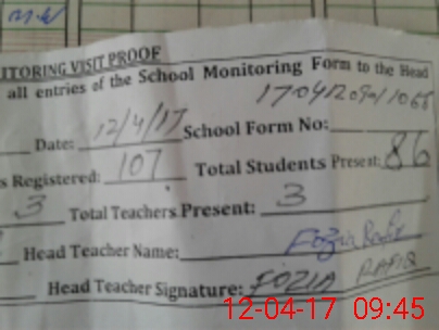 | Attendance Register | Head Teacher | MEA with School | Visit Proof |