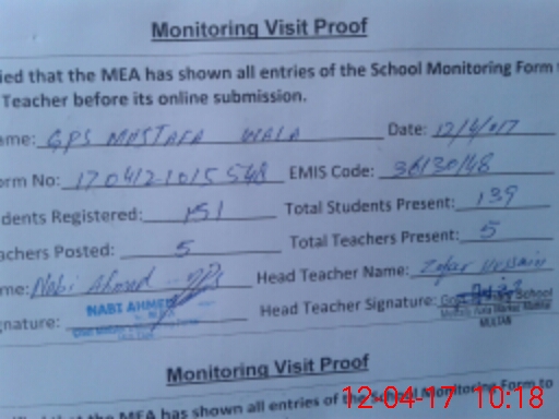 | EMIS Code: 36130148 | Name of School: GPS MUSTAFA WALA | |||
