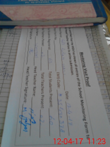 | Attendance Register | Head Teacher | MEA with School | Visit Proof |