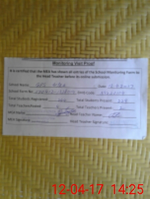 | Attendance Register | Head Teacher | MEA with School | Visit Proof |