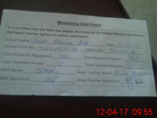 | Attendance Register | Head Teacher | MEA with School | Visit Proof |