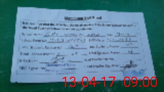 | Monitoring Date: 13-04-2017 | Start Time: 13-04-2017 08:09 AM | End Time: 13-04-2017 09:04 AM | Name of MEA: MU**** AK**** | |