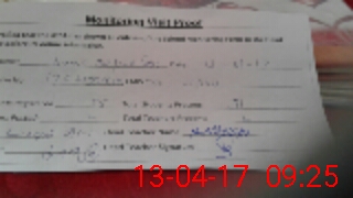 | Monitoring Date: 13-04-2017 | Start Time: 13-04-2017 09:06 AM | End Time: 13-04-2017 09:25 AM | Name of MEA: Li**** Al**** BN**** 11 | |