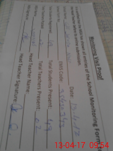 | Attendance Register | Head Teacher | MEA with School | Visit Proof |