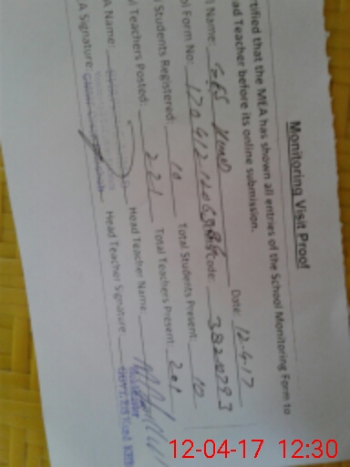 | Attendance Register | Head Teacher | MEA with School | Visit Proof |