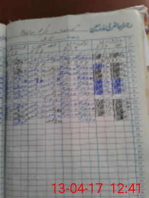 | CNIC | Full Name | Designation | R/C | Absence During Last Calender Month |