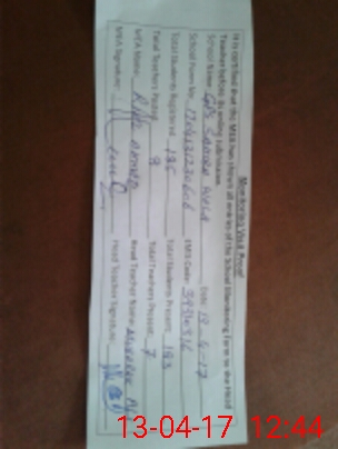 | Attendance Register | Head Teacher | MEA with School | Visit Proof |