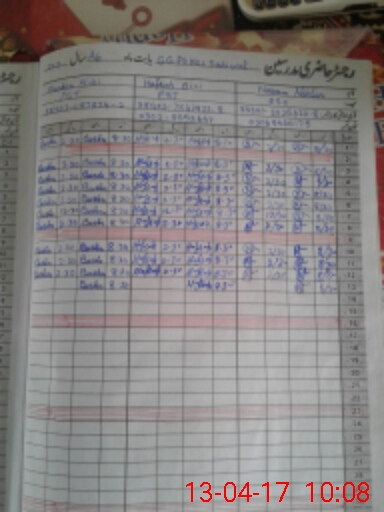 | CNIC | Full Name | Designation | R/C | Absence During Last Calender Month |