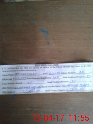 | Name: MAb**** Ba**** Designation: (School Headmaster's/Headmistress's) PST Phone/Cell Number: 03**** |