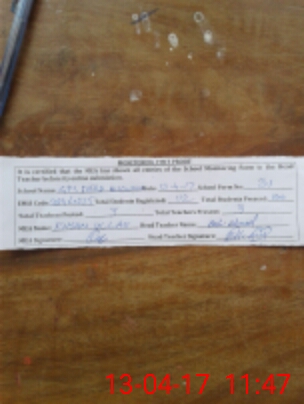 | Attendance Register | Head Teacher | MEA with School | Visit Proof |
