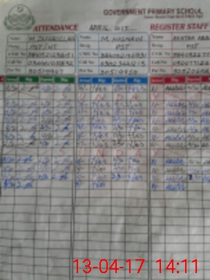 | CNIC | Full Name | Designation | R/C | Absence During Last Calender Month |