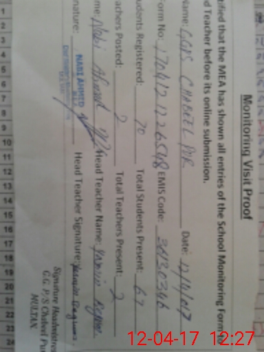 | EMIS Code: 36130346 | Name of School: GGPS CHABEEL PUR SYED WALI KHOI NAWAB PUR ROAD | |||
