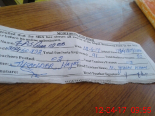 | Attendance Register | Head Teacher | MEA with School | Visit Proof |