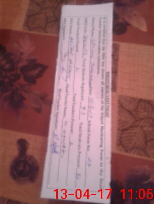 | Attendance Register | Head Teacher | MEA with School | Visit Proof |