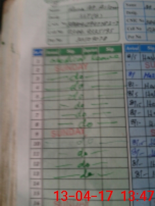 | CNIC | Full Name | Designation | R/C | Absence During Last Calender Month |