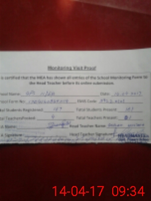 | Attendance Register | Head Teacher | MEA with School | Visit Proof |
