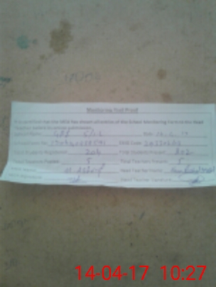 | Attendance Register | Head Teacher | MEA with School | Visit Proof |