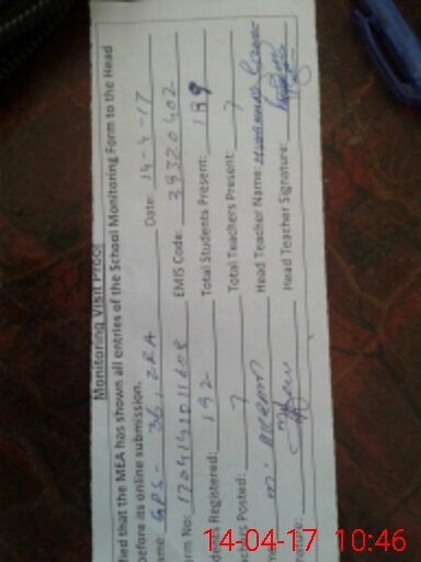 | Attendance Register | Head Teacher | MEA with School | Visit Proof |