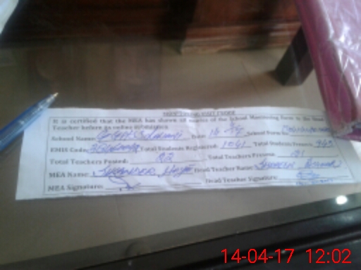 | Attendance Register | Head Teacher | MEA with School | Visit Proof |