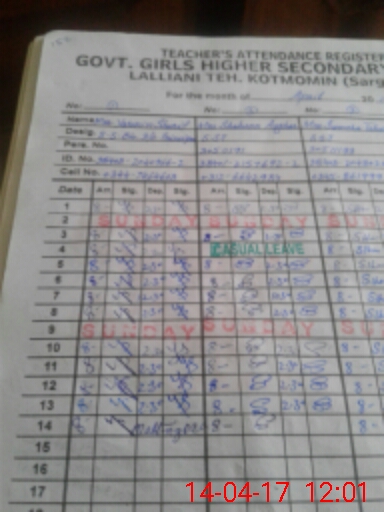 | CNIC | Full Name | Designation | R/C | Absence During Last Calender Month |
