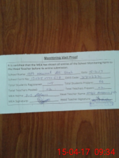 | Attendance Register | Head Teacher | MEA with School | Visit Proof |