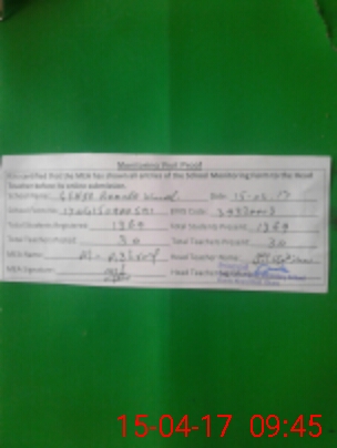 | Attendance Register | Head Teacher | MEA with School | Visit Proof |