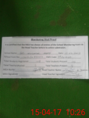 | Attendance Register | Head Teacher | MEA with School | Visit Proof |