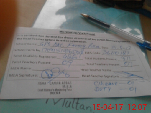 | EMIS Code: 36110187 | Name of School: GPS MC FAROOQ PURA MULTAN | |||
