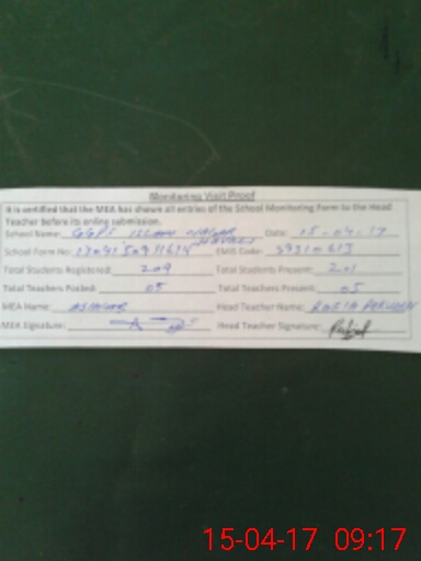 | Attendance Register | Head Teacher | MEA with School | Visit Proof |