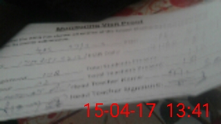 | Attendance Register | Head Teacher | MEA with School | Visit Proof |