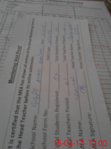 | Attendance Register | Head Teacher | MEA with School | Visit Proof |