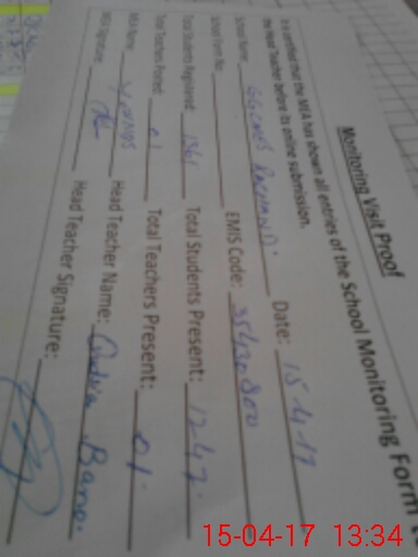 | Attendance Register | Head Teacher | MEA with School | Visit Proof |