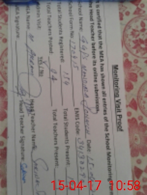 | Certified that this School was Inspected by the Undersigned MEA/DMO Today and the Information Stated Above is as Per Record. | |||||