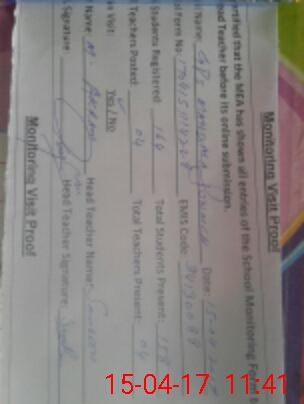 | Attendance Register | Head Teacher | MEA with School | Visit Proof |