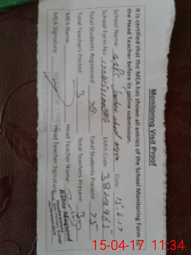 | Attendance Register | Head Teacher | MEA with School | Visit Proof |