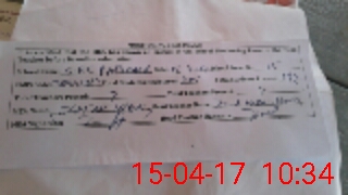 | Monitoring Date: 15-04-2017 | Start Time: 15-04-2017 10:09 AM | End Time: 15-04-2017 10:36 AM | Name of MEA: ZA**** IQ**** | |