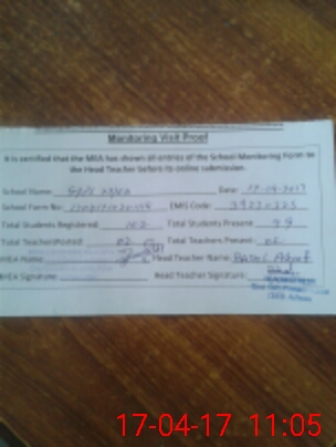 | Attendance Register | Head Teacher | MEA with School | Visit Proof |