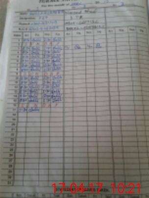 | CNIC | Full Name | Designation | R/C | Absence During Last Calender Month |