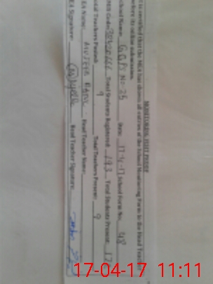 | Monitoring Date: 17-04-2017 | Start Time: 17-04-2017 10:26 AM | End Time: 17-04-2017 11:11 AM | Name of MEA: MU**** MU**** RA**** | |