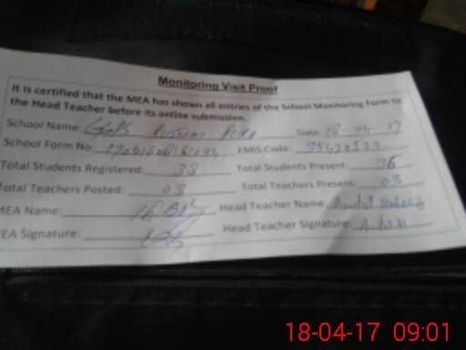 | Attendance Register | Head Teacher | MEA with School | Visit Proof |