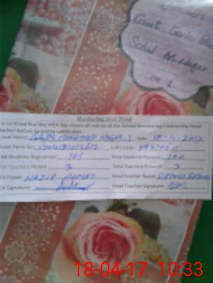 | Attendance Register | Head Teacher | MEA with School | Visit Proof |