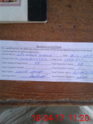 | Attendance Register | Head Teacher | MEA with School | Visit Proof |