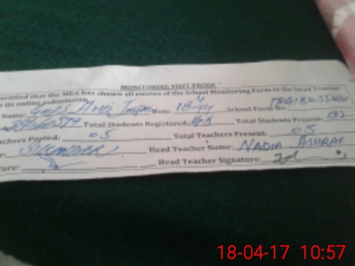 | Attendance Register | Head Teacher | MEA with School | Visit Proof |