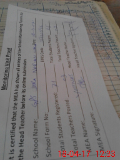 | Attendance Register | Head Teacher | MEA with School | Visit Proof |