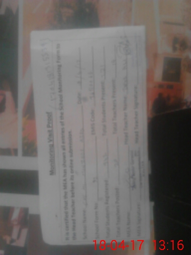 | Attendance Register | Head Teacher | MEA with School | Visit Proof |