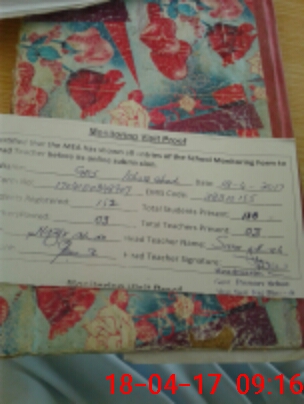 | Attendance Register | Head Teacher | MEA with School | Visit Proof |