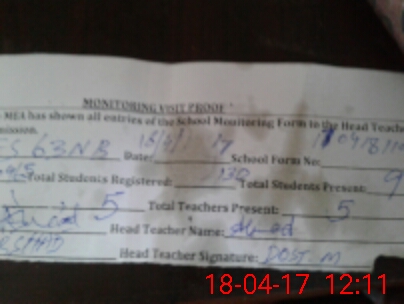 | Attendance Register | Head Teacher | MEA with School | Visit Proof |