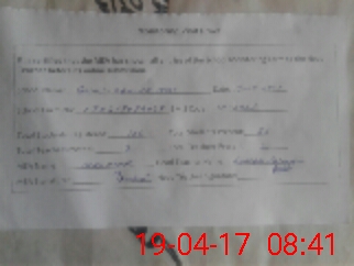 | Monitoring Date: 19-04-2017 | Start Time: 19-04-2017 08:27 AM | End Time: 19-04-2017 08:44 AM | Name of MEA: Mu**** ah**** BN**** 29 | |