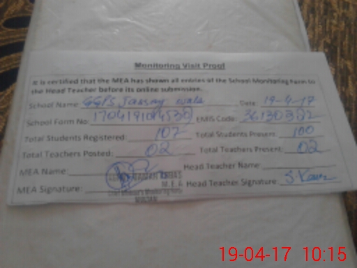 | EMIS Code: 36130382 | Name of School: GGPS JASSAY WALA QADIRPUR LAR | |||