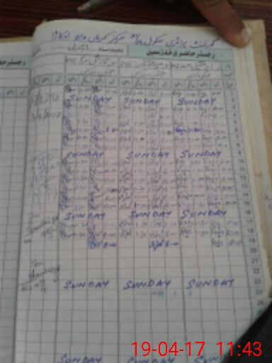 | CNIC | Full Name | Designation | R/C | Absence During Last Calender Month |